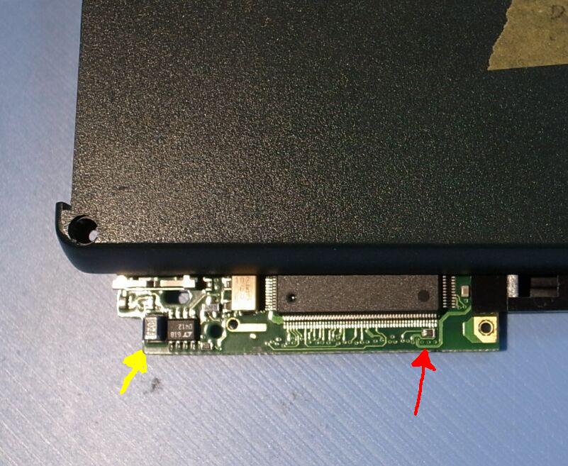 抵抗器は基板用のフラットタイプ(flat type)であり、これを交換(追加)して動作は正常になりました。 小さな部品一つでも、戻せばちゃんと動作するところが素敵です。 筐体の右側ヒンジ部(hinge)は、落下のショックで浮いています。 (写真参照) サイズを計ったところ2[mm] x 1.25[mm]角でしたので、 レジスターの規格は、 (0.08[inch] x 0.05[inch])の0805型、容量1/8[W]、抵抗値は1002表示の10[KΩ]、誤差1[%]であることがわかります。 http://www.esr.info/pdf/products/SMDC.pdf |