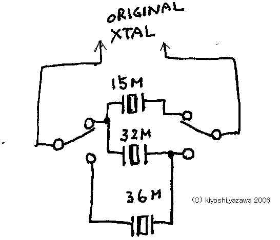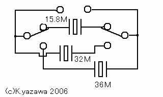 上記同様に切り替わりますが、さらに水晶を一つ足して4段階切換を可能とすべく変更したものです。
