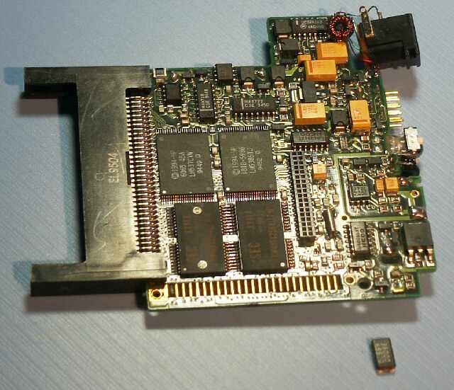 36[Mhz]爆速水晶は、表面実装型の薄いものであり、既存のNAND ICの上にエポキシ樹脂を用いて接着しました。
