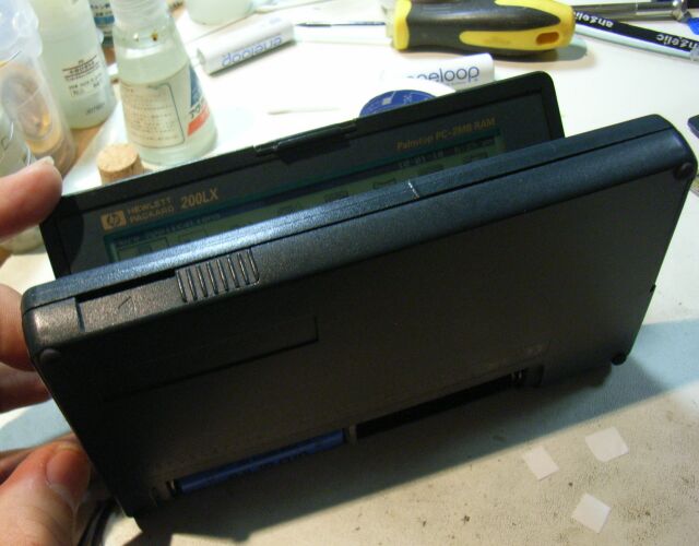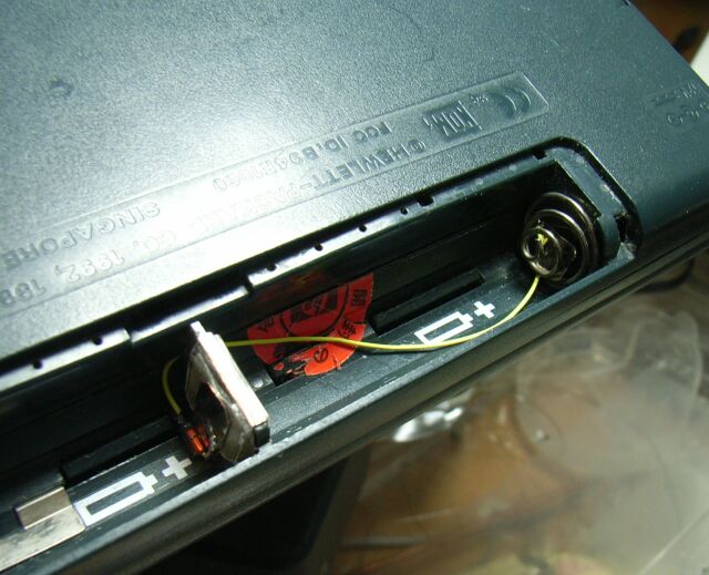 | hp200LX 活用例:本体内に予備(スペア)電池を搭載する。 hp200LX improvement: A standby battery by lithium rechargeable battery was equipped.) |