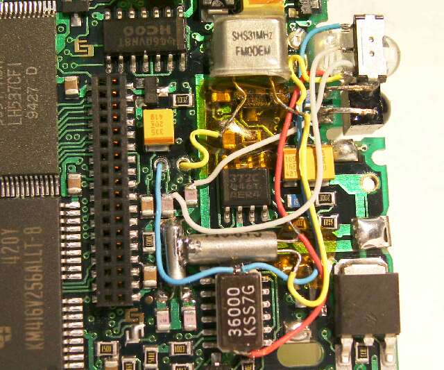 30Mと36M水晶は、表面実装用の薄型を、既存のICの上に接着固定しています。