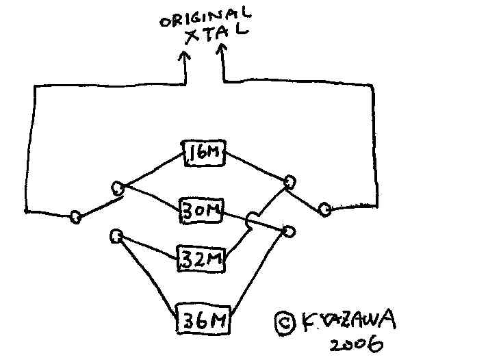 この例は、4つの水晶に、(1)標準(2)若松倍速(3)汎用倍速(4)爆速36Mを配したものです。