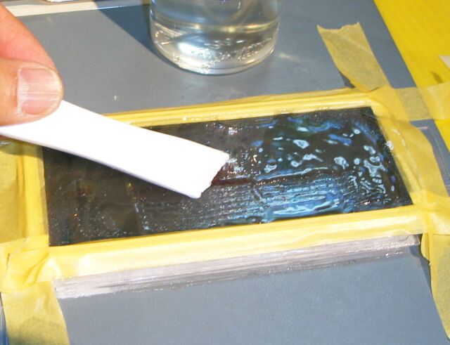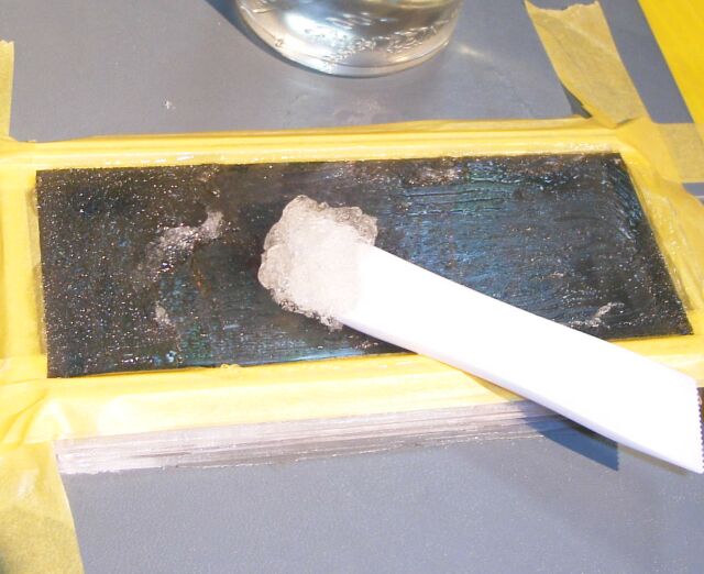 ここでは、プラスティック製のヘラを使います。(木製でも良いでしょう) |