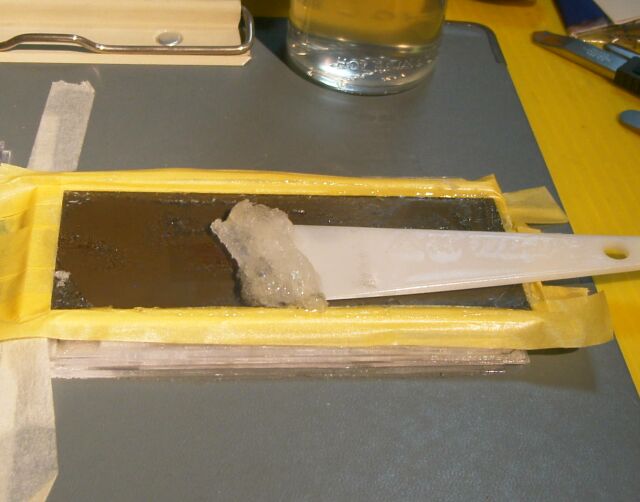 ゼブラゴムは外さずに、ガラス側に残したままマスキングしてしまう方が、あとで楽です。 |