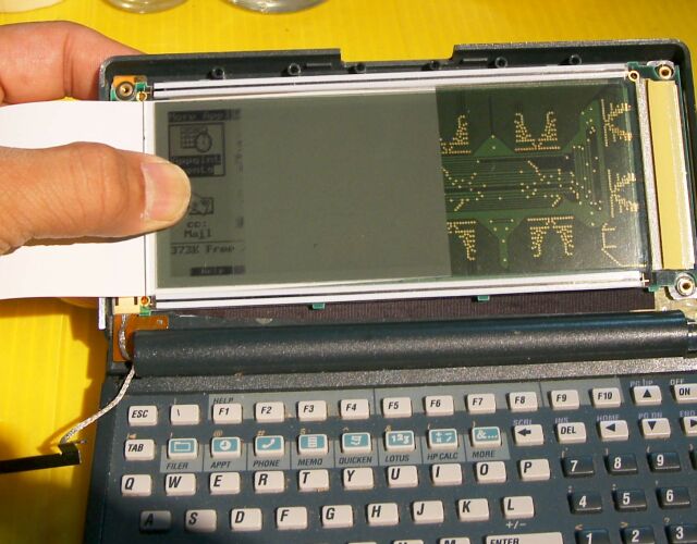 綺麗になった液晶部を、仮に戻して、通電させてみます。