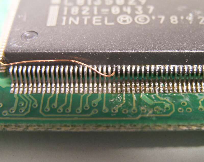 ここで、一度点灯させると、ジャンプを外しても電源OFFにするまで消えません。(まだCPUには接続させていないので、オープン状態により不安定なため、ジャンプを解いてもOFFの信号にならない) |