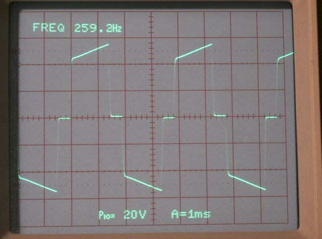 写真はELの一極と接地との間の波形ですので半波波形です。