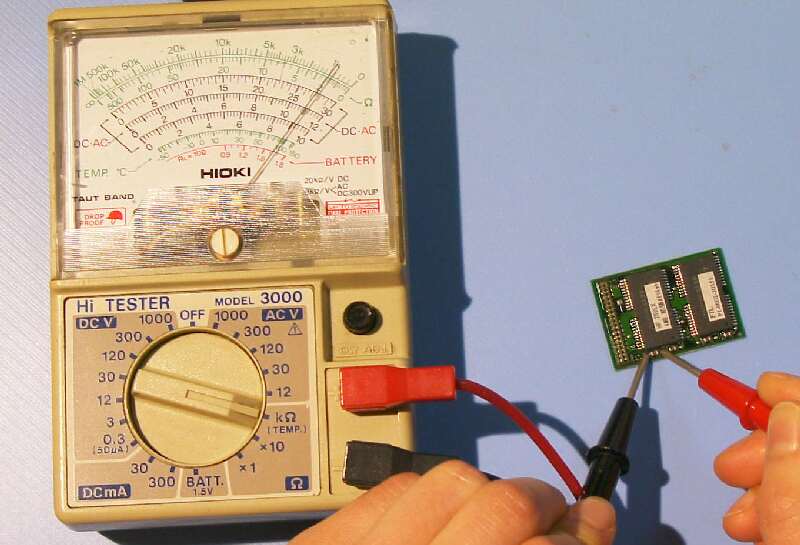 プローブ(測定リード端子)を逆に接続したこところ、これも約1[kΩ]でした。(写真右)