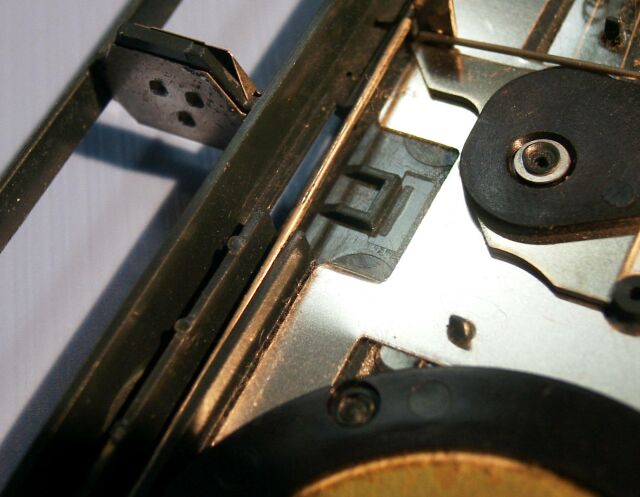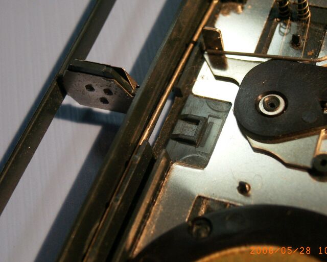 この金属棒部分に電池蓋の突起が邪魔され、ロックを解除できないために、電池蓋を外すことが困難になるわけです。