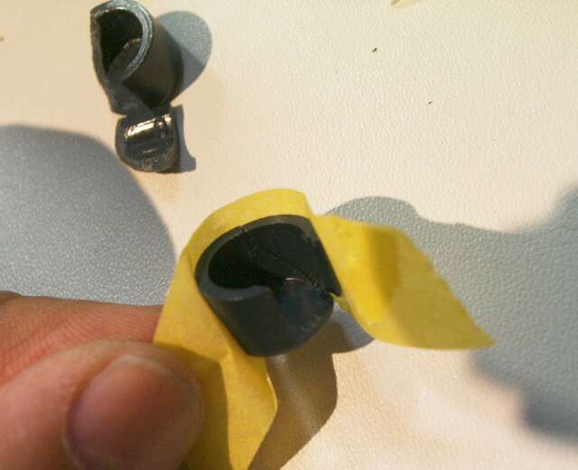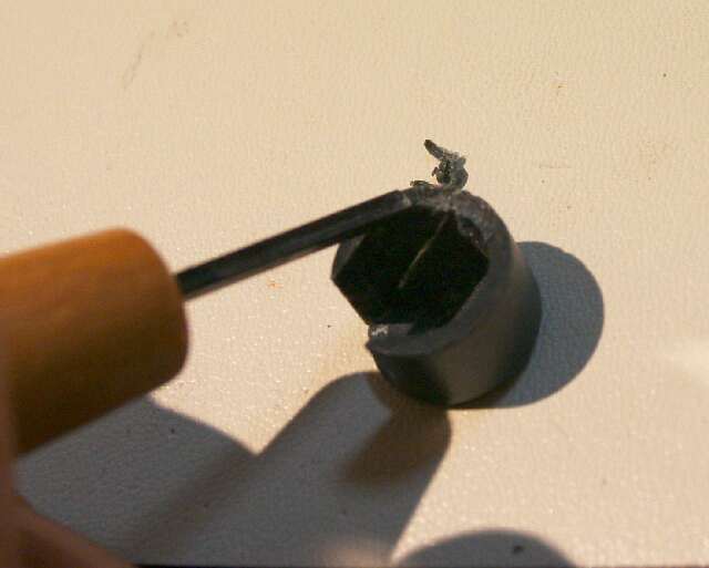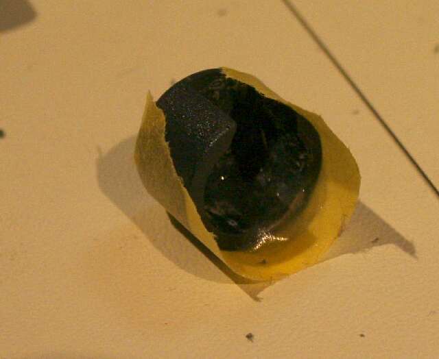 | この割れは、落下の際だけでなく、使用中に突然生ずることがあります。 いきなりパカッと分解するように割れ落ちるので、気づかずに無くしてしまうこともあります。 昔は若松の地下売り場で、キャップだけが売られていました。 今思えば、買っておけば良かったのですが。 このキャップは美観だけでなく、ポケットなどから200LXを出し入れする際に、ひっかかりを無くす作用もあります。 動作にはなんら影響しないので、無くても良いのですが、なんとも間が抜けたような外観になり、愛機に対する情(?)を損ねるような気がします。 以下は、割れてしまったキャップの修復例です。 欠損が生じたときには、プラリペア (登録商標)で造形します。 |