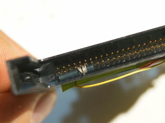 折れた支柱とスプリングは、内部のカードスロット(挿入電極)に挟まっていました。