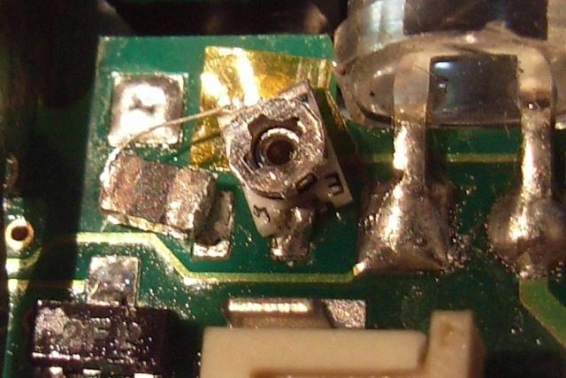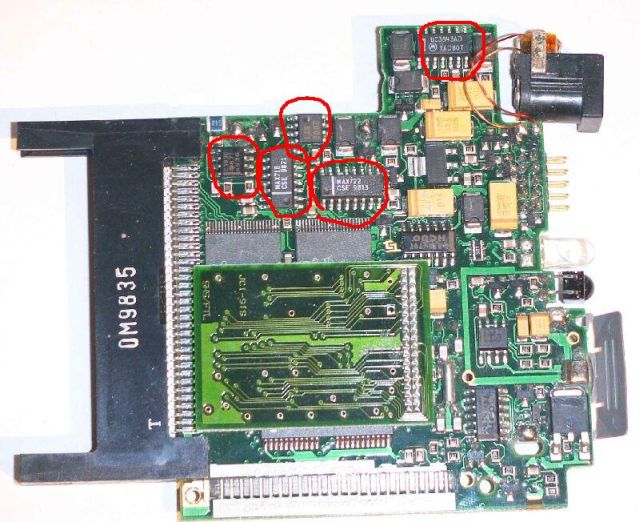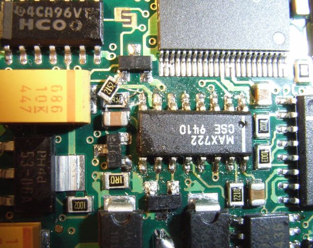 | いつのまにかコントラストが変化(薄くなる、弱くなる、濃くなる、強くなる)事例があります。 徐々に変化したり、突然発生する場合もあります。 これらは、コネクタの接触確保や、ICへの電気刺激(おそらく内部でのラッチが解除される)で直ることがあります。 また、IC(MAX722)を換えて直った例もあります。 しかし、全く直らない場合もあり、以下はその対処法です。 直らない状況には2種類あり、 (1)コントラストが薄い(または濃い)が、キーボードでの調整(ONを押しながら+−キーを押す)は作動している。(最高に調整しても薄い、または濃すぎる表示にしかならない。) (2)コントラストが薄く(濃く)、キーボードでの調整が全く効かない。 ここでの対処法は、コントラストをソフトウエアでの調整ではなく、ハード的(機械的)に調整してしまうものです。 (要するに、基板上にコントラスト調整抵抗を付ける。) この場合、上記(1)の場合には、一度調整(シフト)させてしまえば、以後普通にコントラストの調整ができます。 上記(2)の場合には、コントラストをキーボードでは調整できませんが、見えるようにはなるので、使うことは可能になります。(使用中に調整したくなった場合には、再度トリマー抵抗を回さなければなりません。) |
