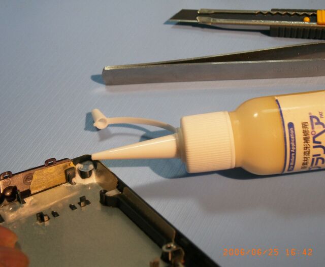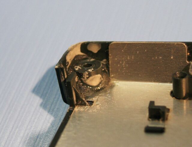 hp200LX 修理例 (補助電池付近の底蓋ネジ付近の割れ)