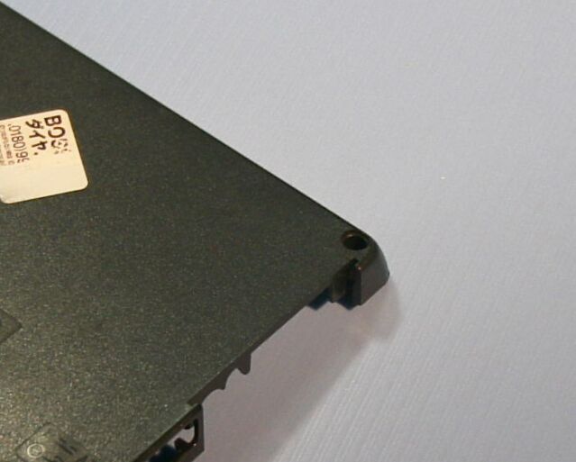 補助電池の蓋の付け根にあるネジ穴が割れています。