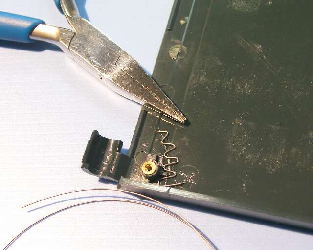 だけでは強度不足ですので、補強のために金属線(0.35mmのピアノ線)をあてがいます。
