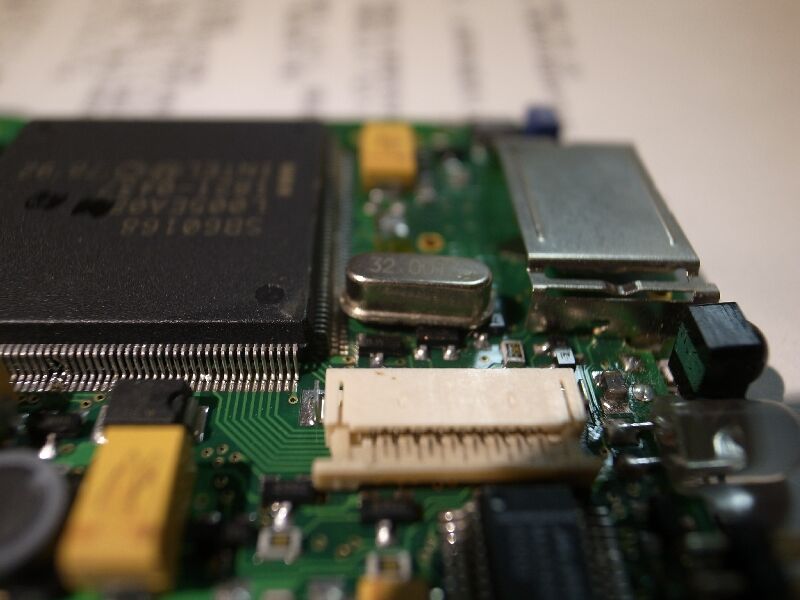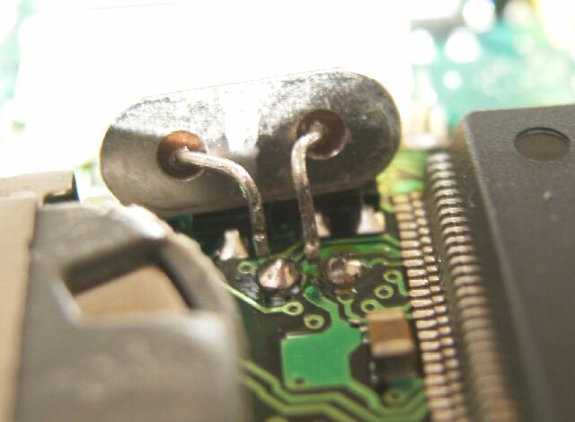 良く見ると水晶(クリスタル)の足が半田付け部で外れています。