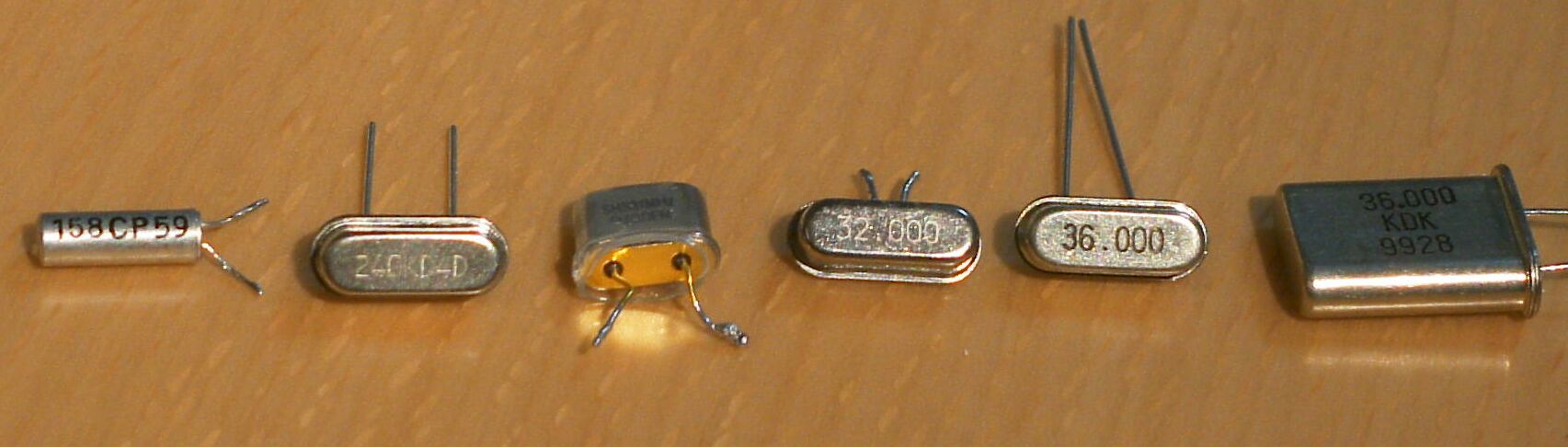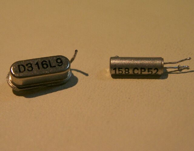 周波数31.67Mhzの水晶振動子にも、標準型と全く同じ形状のものがあります。(写真内、上は標準水晶、下は倍速水晶)