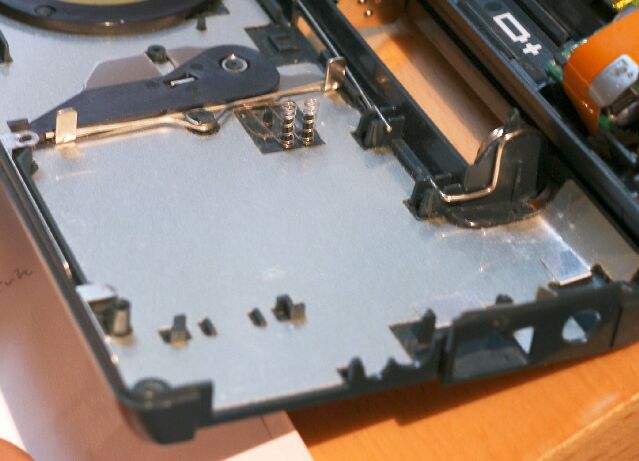 (この突起は、補助電池が内部に侵入しないようにするダムの働きがありますが、水晶自体が突起の役割をします。)