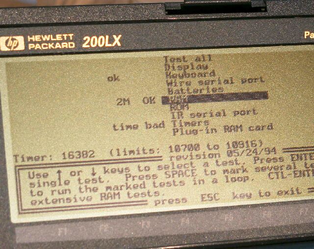 別に水晶用では無く、200LXに備えられているテスト機能を使うものです。(ESCキーを押しながら電源を入れるとテスト画面になります。)