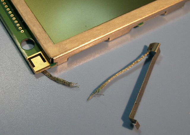 液晶の接地部を、電池のマイナス側に直接接続しています。