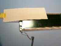 糊剥がしの終わった液晶は、透明で表示が見えないため、反射紙を挿入します。
