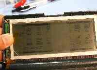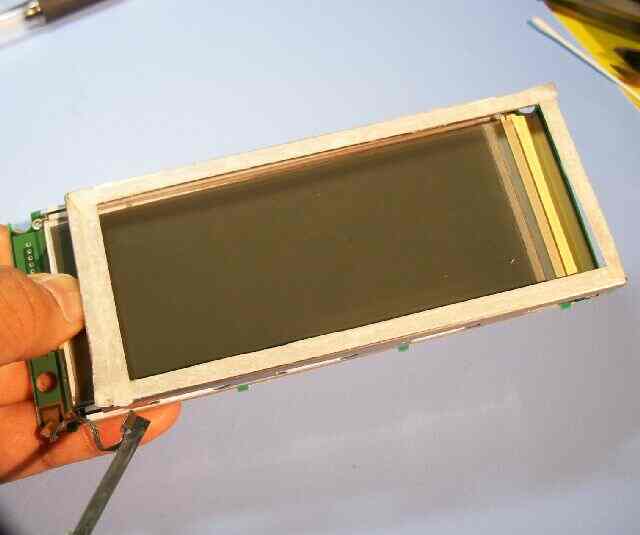 液晶を表示させたまま、上側のガラスを押しながら、少し横方向に動かすと、部分的に鮮明に表示されます。