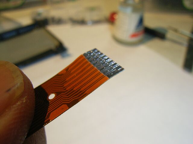 (hp200LX trouble: Loose contact by unnecessary solder to connector of display part.)