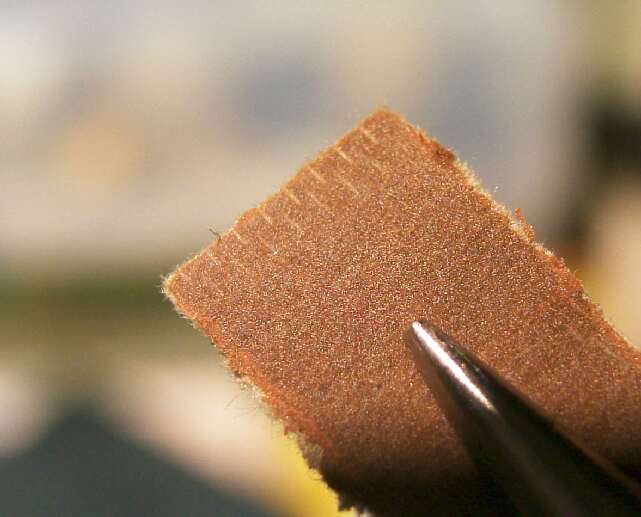 これは、引き抜いた紙やすり(サンドペーパー)ですが、コネクタの金属が磨かれた跡が残っています。