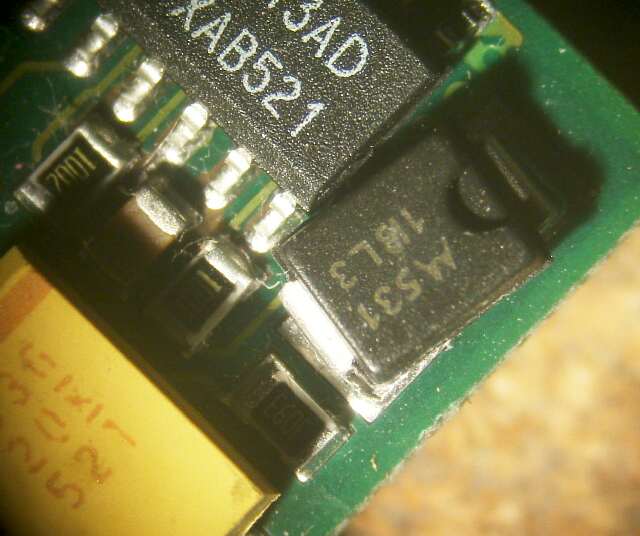 | この故障例は、表示が消えてしまうものです。 しかし液晶をある角度にしたときに急に直り、その状態では作動が確認できます。 ここで液晶を通常の使用状態にすると全くでません。 つまりディスプレーの角度により、表示が出たり消えたりします。 キーボードを、でたらめに打っていると、急に直ることもありました。 当初は、液晶のフレキケーブルの断線だろうと思いましたが、基板を別の液晶につないでみると表示しません。 その後、何をしても全く表示しなくなりました。(基板が壊れた状態) |