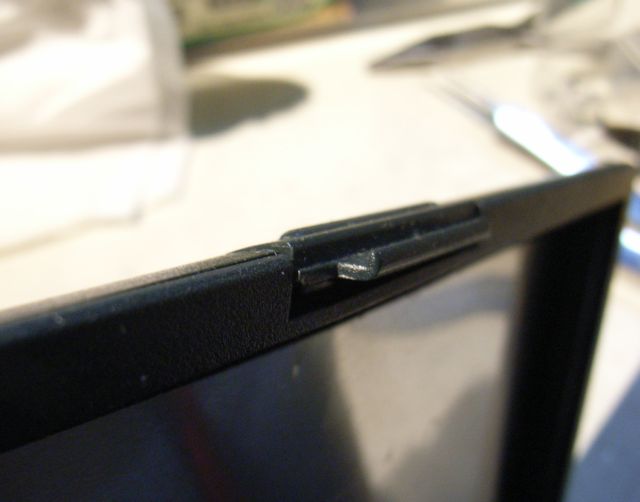 | hp200LX 故障例: 液晶のラッチ部が抜け出る。 (hp200LX trouble: Display latch missing. ) |