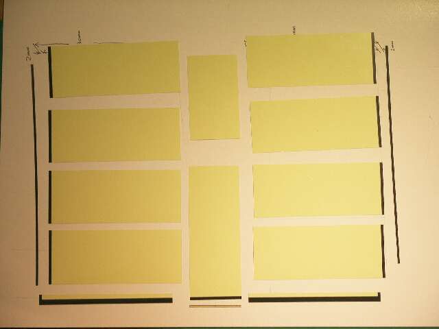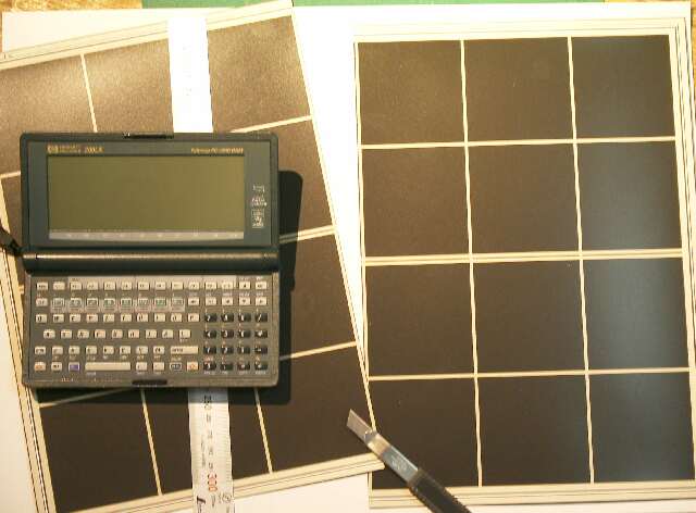 次に、二つの大きな板を、電極の無い方から、52mmの幅で切り分けます。(4枚取れます。)