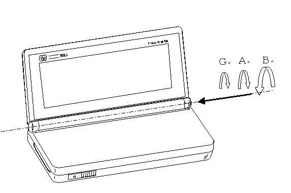 ・この状態は、ヒンジ部の保持力(A)が弱く、液晶が重力で動こうとする力(G)の値5より小さく