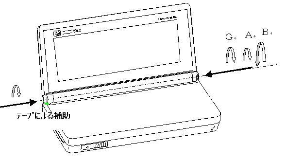 ・ここで、テープによる補助を行い左のヒンジ部に摩擦力を3 与えます。