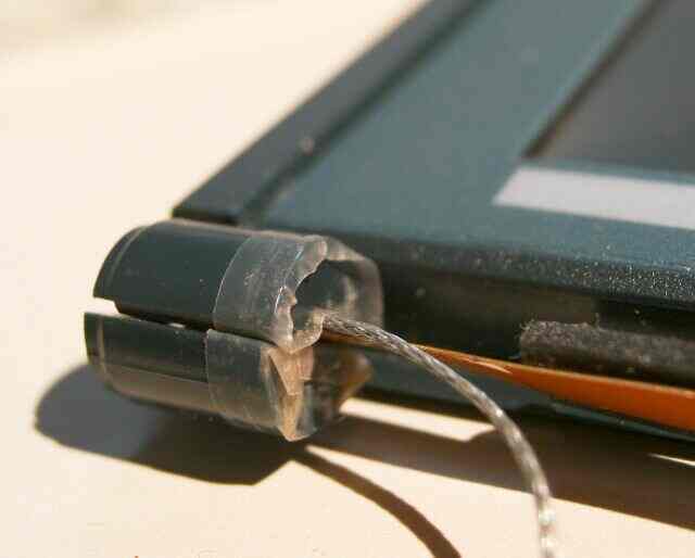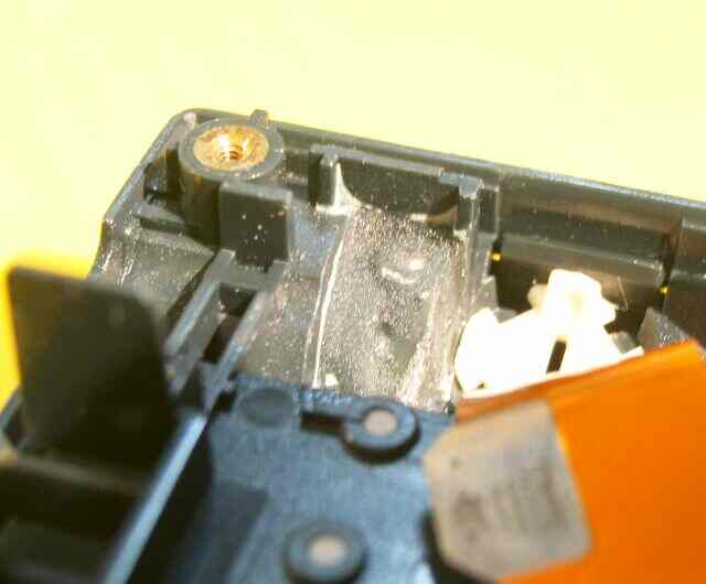 この割れの発生原因は、ヒンジが硬かったために、液晶の開閉で無理な力が繰り返し加わったためです。