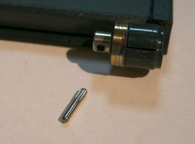 この場合には、ピン側のかしめ部を叩いて変形させ、穴に叩きこんで抜けないようにします。
