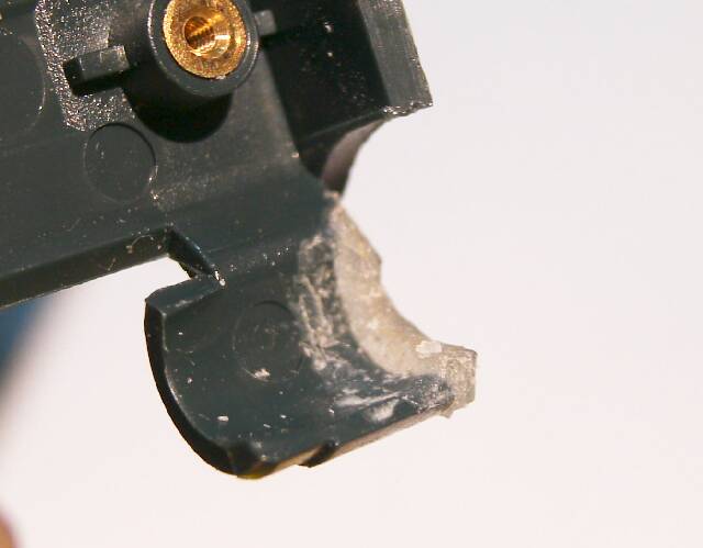 写真左:他の破損固体の修理例 写真中:修理したヒンジ部 (ヒンジ組立て調整参照) 写真右:修理組立て後(ヒンジキャップを付ける前) |
