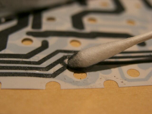 | 故障原因:スペースキーの両側に切り込みがあり、これがキーの下にある電極パターンを切断したため。 | ||||||||||||||||||