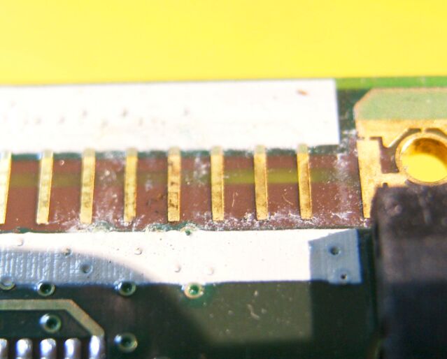 これは、キーボードと主基板とを接続するコネクタ部分ですが、両側に腐食が生じています。