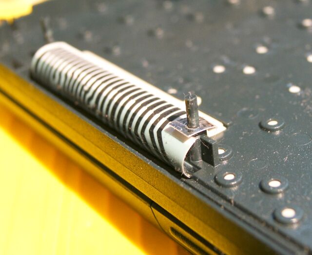 この場合、接触圧を得るためにスポンジを厚いものに交換したり、紙片で厚みを増したりする簡易修理が行われています。 |