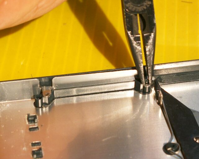 (写真で2箇所のネジ(ビス)の頭が見えます)