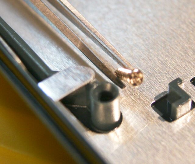 取り外しの際には、ネジを外す手順が増えますが、ピンが折れるような無理な力を筐体に加える必要がないので、分解が容易になります。