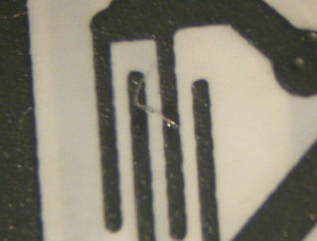 良く見ると、電極がかすれたように見えますが、ほこりの塊でした。