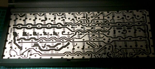 左の写真は、キートップを外したところです。各キーそれぞれに個別に電極が設けられています。
