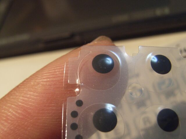 キーを分解してみたところ、左上部分で、電極シートとスペースシートとが、一部で重なっています。