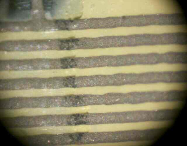 これはフレキの拡大であり、黒い点々になっている部分で切れかかっています。