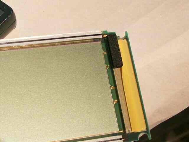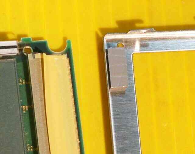 この部分は、液晶基板からの横(ライン)の信号を液晶ガラスへ伝える部分であり、導電性接着剤のようなもので、接続されています。