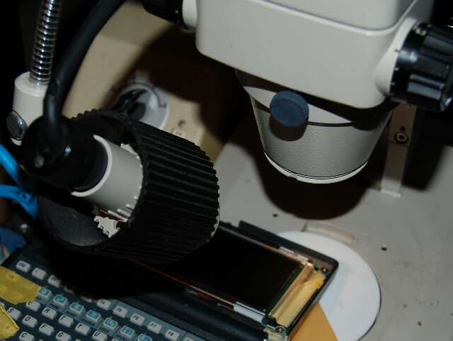 この写真は再半田後の表示ですが、多くの縦線が消えたものの、まだ左に2本と横線が消えていません。