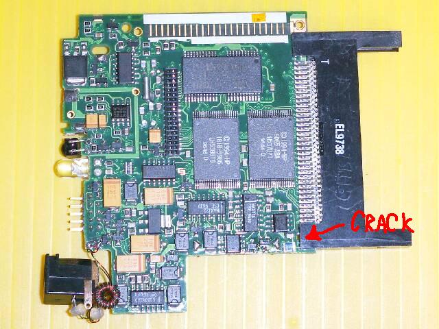 修理は、割れ部分をバイパスさせるリード線を設けることで行い、これで無事起動するようになりました。