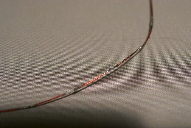 ホルマル(エナメル)線を3mm程度の間隔で被覆を溶かし半田の下処理します。