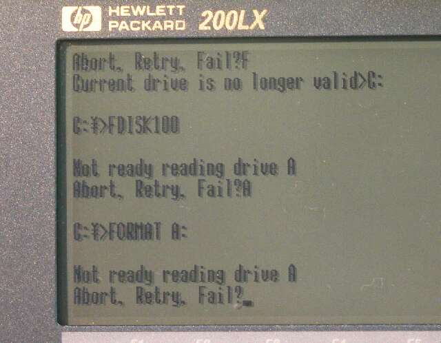 写真右は、この状態で、200LXの内蔵ソフト(DOSの外部コマンド)FDISK100とFORMATをしてみたところです。